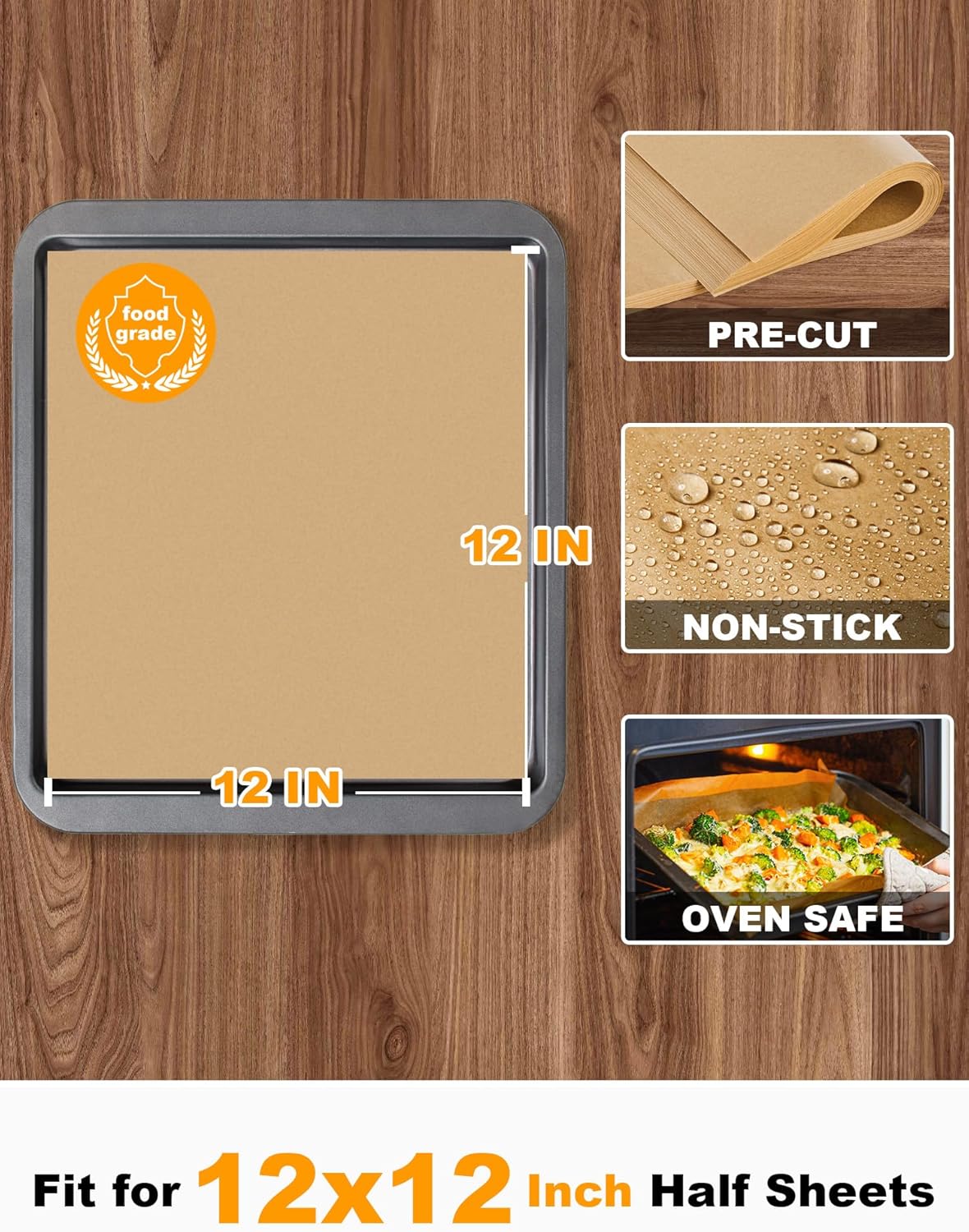 Easy Storage: Come with 200 pieces of 12×12 inches parchment paper sheets inside a packing box, you can store the box in the closets and drawers near your baking pans.